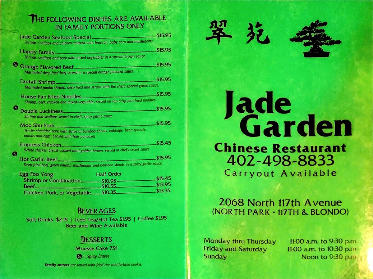 Jade Garden, located at 2068 N 117th Ave, Omaha, NE 68164, offers a wide-ranging menu that showcases the richness of Asian cuisine, with a variety of dishes to satisfy different tastes. Starting with appetizers, guests can enjoy the Eggroll and Crab Rangoon as well as crispy Fried Won Ton and flavorful Chicken Wings or Hot Wings. These appetizers set the tone for the delicious meal ahead.